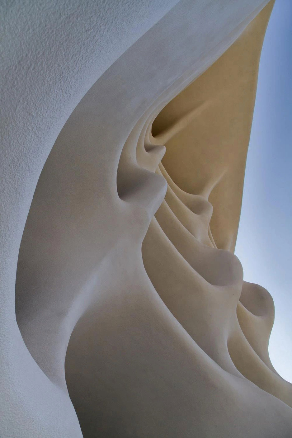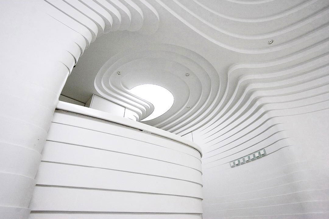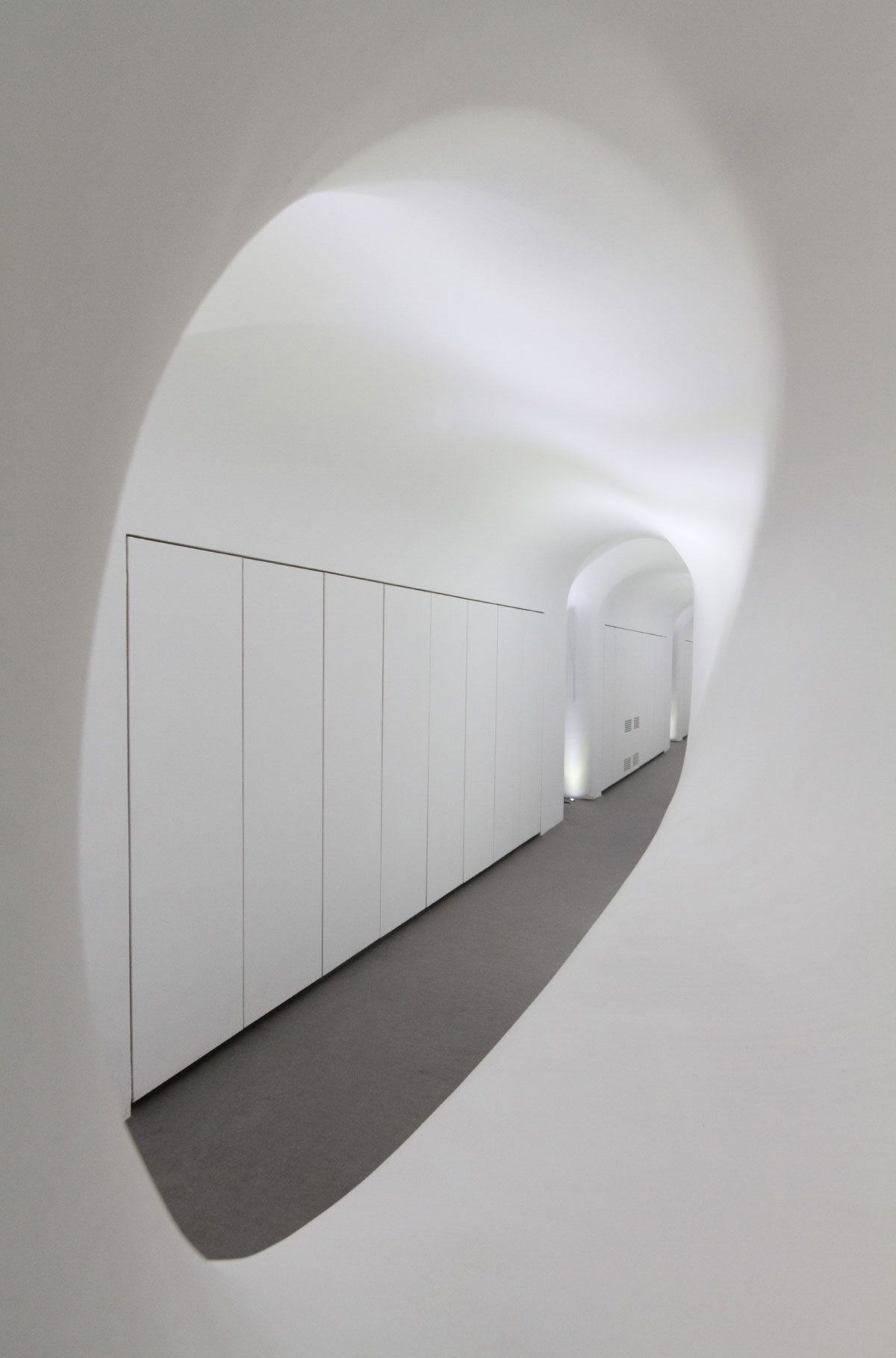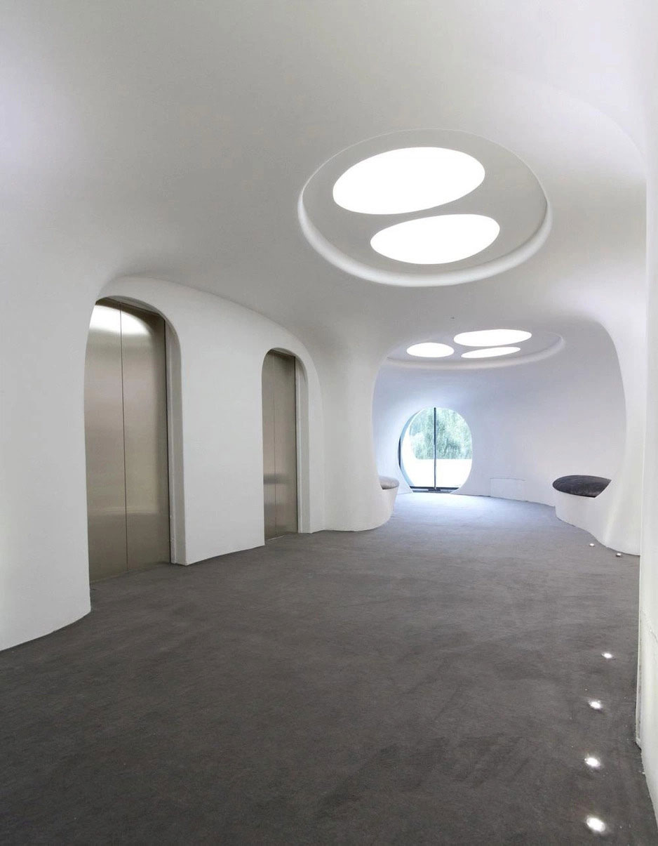 Así pues, la experiencia espacial viene determinada por la continuidad de las formas orgánicas. Los pasillos y las estancias fluyen sin ángulos rectos, mientras que las «ventanas con forma de canto rodado» enmarcan vistas espectaculares de la cordillera. El predominio del blanco, por su parte, refuerza la metáfora de la humilde nieve, que lo cubre y unifica todo al caer del cielo. En consecuencia, ya no es un edificio que ocupa un lugar, sino que parece brotar de él.