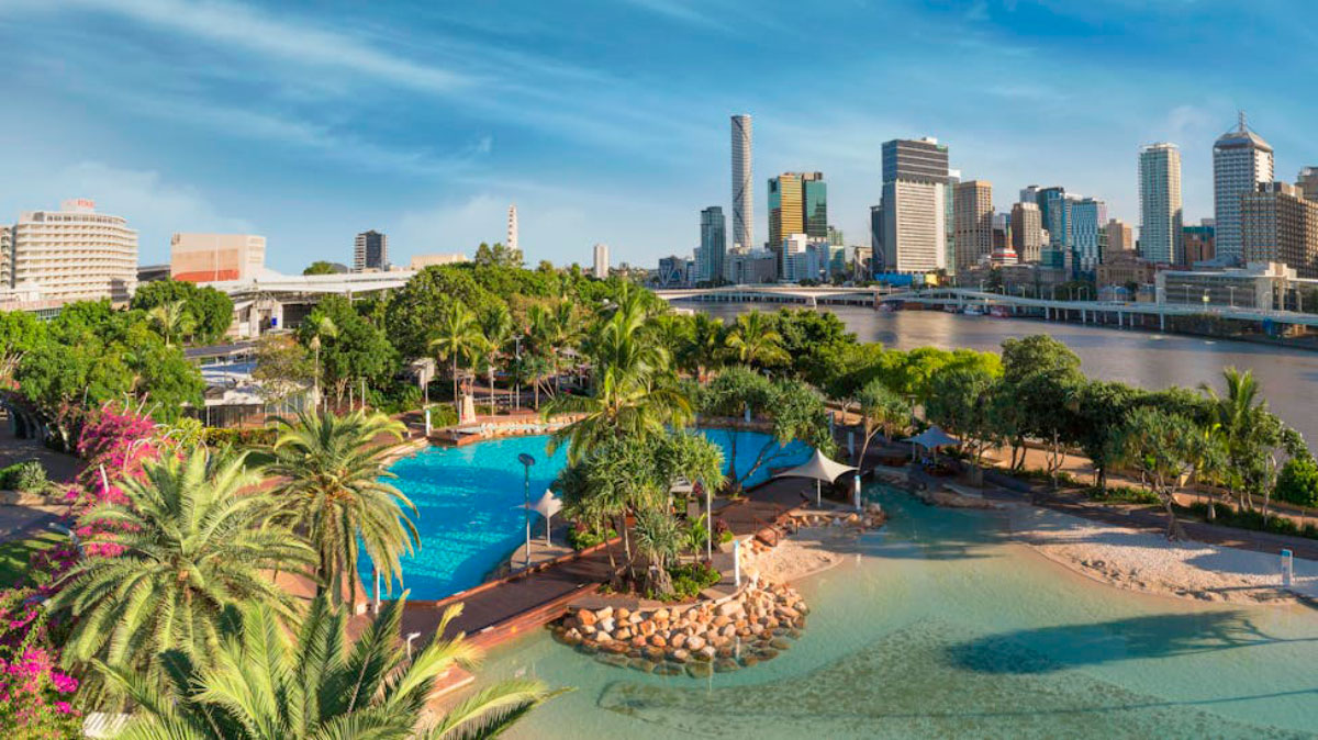 Una playa artificial en Brisbane, Australia