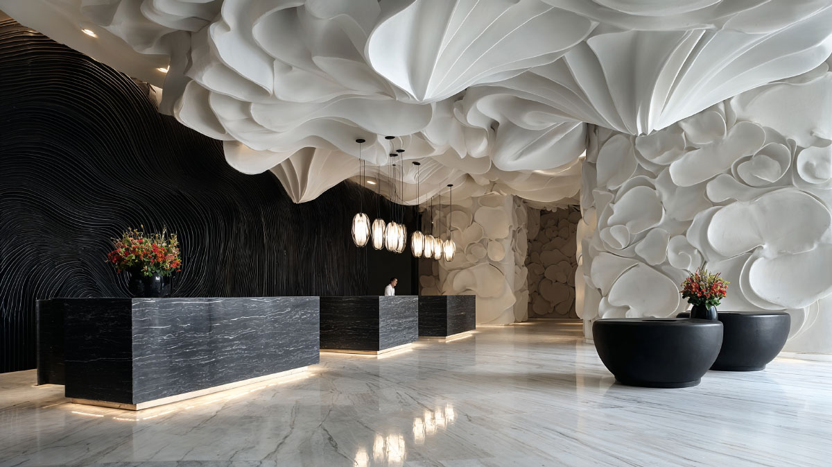 Estas geometrías escultóricas dan carácter al diseño de interiorismo y son un testimonio de la capacidad de transformación en la arquitectura contemporánea de la fabricación avanzada. Cuando se suman el diseño digital, el mecanizado de precisión y los materiales técnicos, el resultado es una arquitectura de interior donde el único límite real es la imaginación.