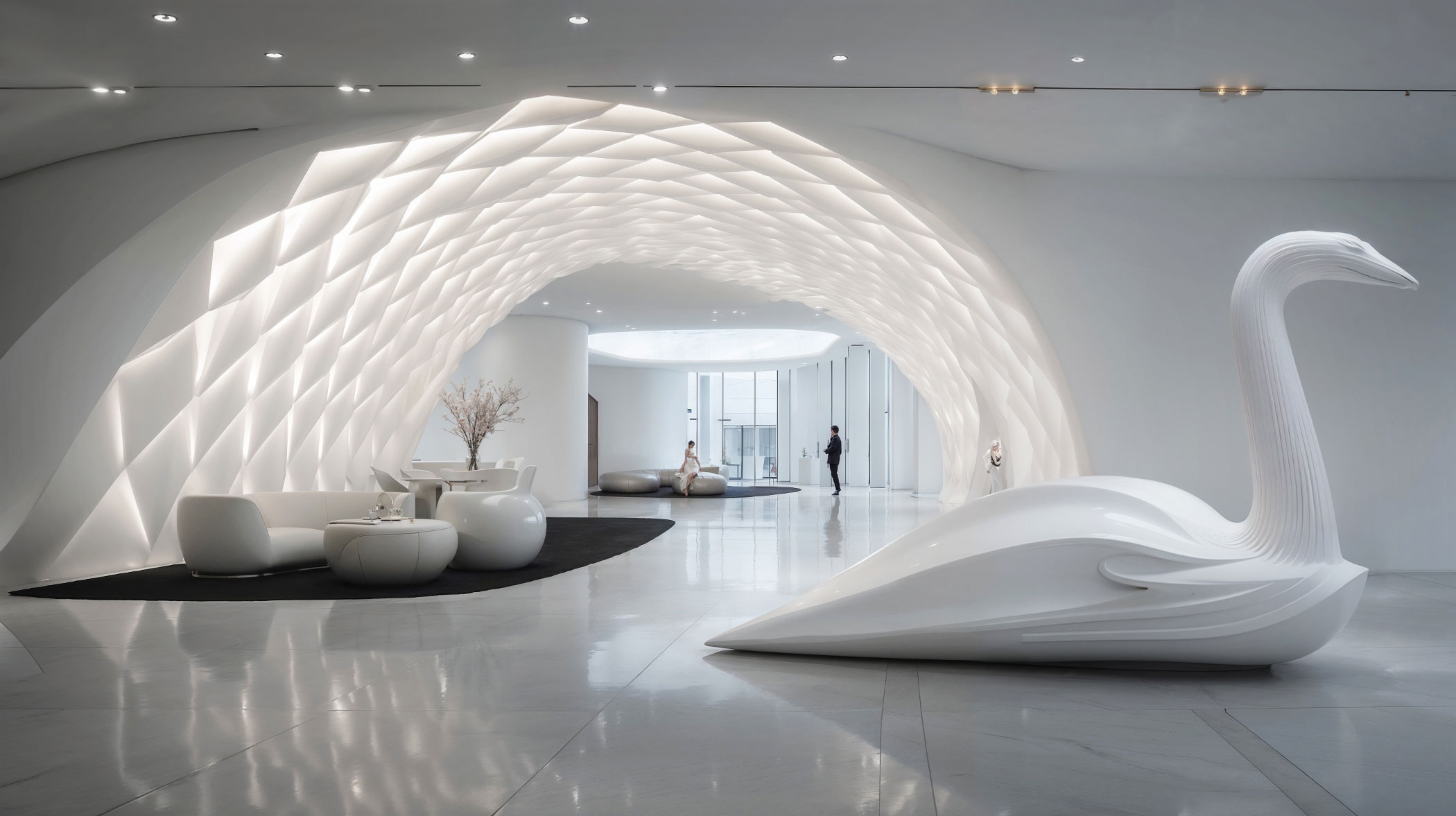 Al entrar en estos vestíbulos que propone el Departamento de Diseño de Amusement Logic, la arquitectura se inclina en el primer gesto de bienvenida. Las superficies, las curvas y los haces de luz producen una inmediata impresión de sofisticación. El espacio no simplemente recibe, sino que envuelve al visitante con esa atmósfera en la que se confunden arte y tecnología para proporcionar una experiencia particular.