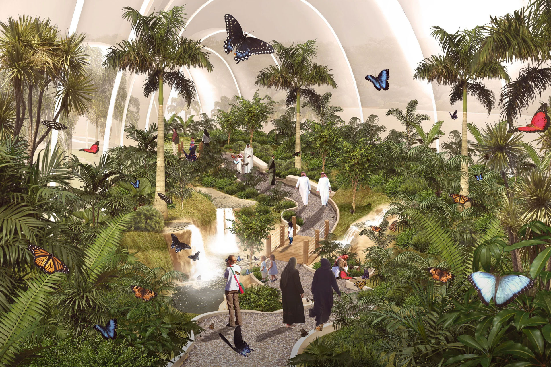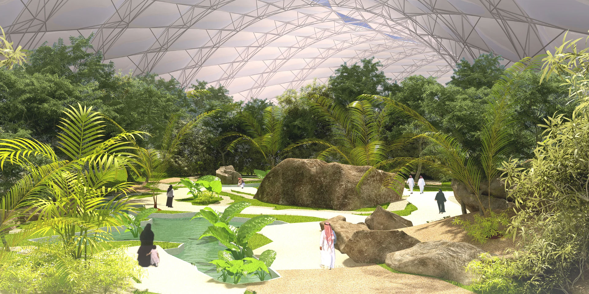En el paisaje desértico de la región central de Arabia Saudí, a las afueras de su capital, Riad —apenas a 15 km del lugar en el que se desarrolla Qiddiya City, el gran centro de ocio y entretenimiento del país—, toma forma un proyecto singular: los Jardines Internacionales Rey Abdullah (KAIG por sus siglas en inglés). El entorno árido y hostil en que se sitúan estos grandes jardines botánicos, precisamente, adquiere sentido gracias a uno de sus principales propósitos: mostrar la fragilidad y resiliencia de la naturaleza, así como la profunda historia climática de la región, que no siempre fue un desierto.